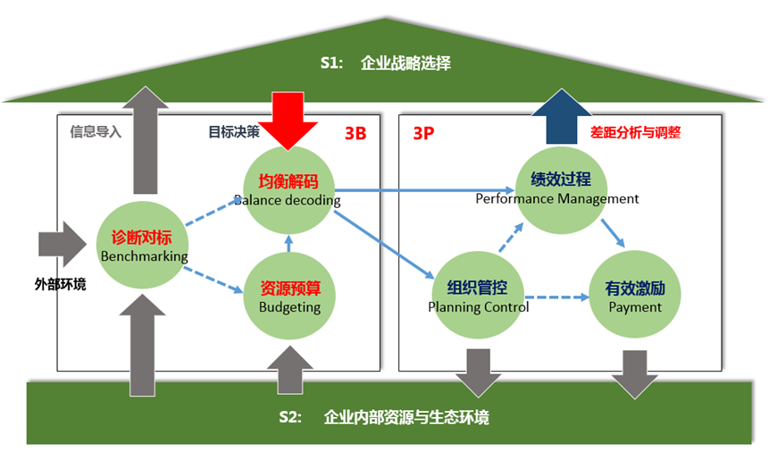 2S+3B+3P,構(gòu)成了一個全新的戰(zhàn)略規(guī)劃、分解、執(zhí)行、評估、激勵的完整閉環(huán),從戰(zhàn)略管理的角度來看,這是一個“戰(zhàn)略-組織-執(zhí)行-反饋”的經(jīng)典閉環(huán),從績效管理的角度,這是一個“績效計劃-績效過程-有效激勵-反饋”的績效循環(huán),兩者的有機結(jié)合,成為一種支撐戰(zhàn)略轉(zhuǎn)型的新型管理工具。