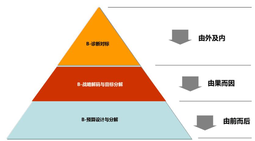 通過戰(zhàn)略性對標(biāo)(Benchmarking)明確組織差距;通過戰(zhàn)略解碼形成任務(wù)列表、繪制戰(zhàn)略地圖,編制BSC指標(biāo)體系;通過戰(zhàn)略性預(yù)算管理(Budget)對經(jīng)濟(jì)指標(biāo)進(jìn)行量化分析,通過戰(zhàn)略績效一體化管理,化戰(zhàn)略為執(zhí)行。