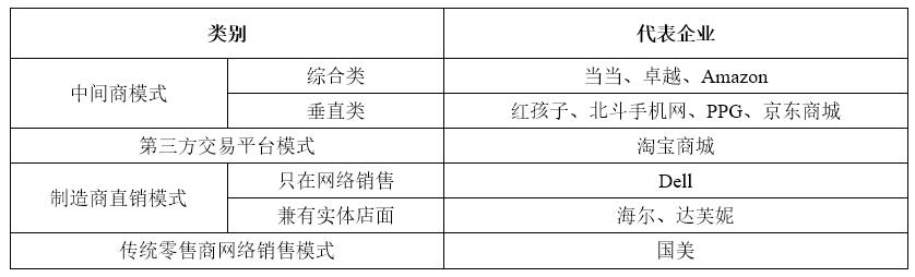 表:B2C商業(yè)模式分類