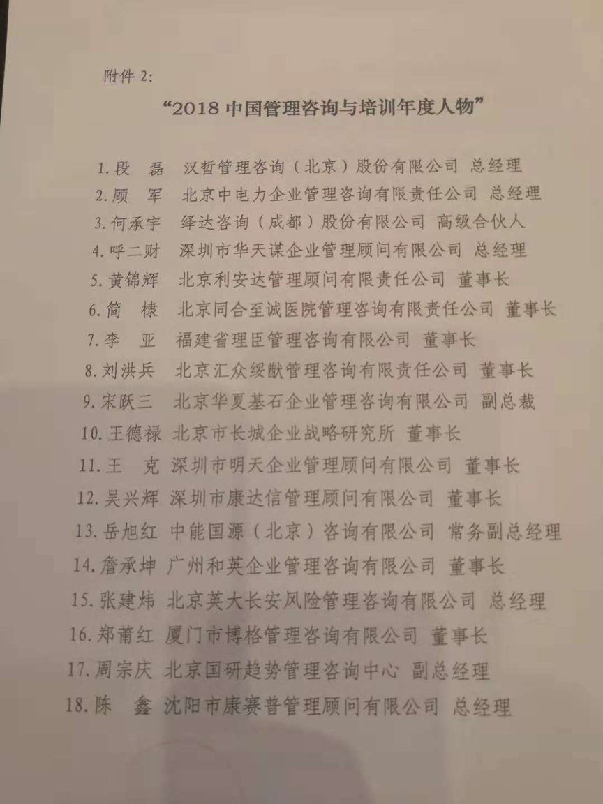 漢哲咨詢首席專家段磊博士,榮獲2018中國管理咨詢與培訓年度人物,且名列榜首。