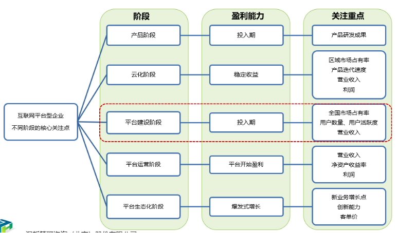 其中,《長效激勵方案(公司級)》中創(chuàng)新性地提出了互聯(lián)網(wǎng)平臺型公司的發(fā)展階段和特點(diǎn):
