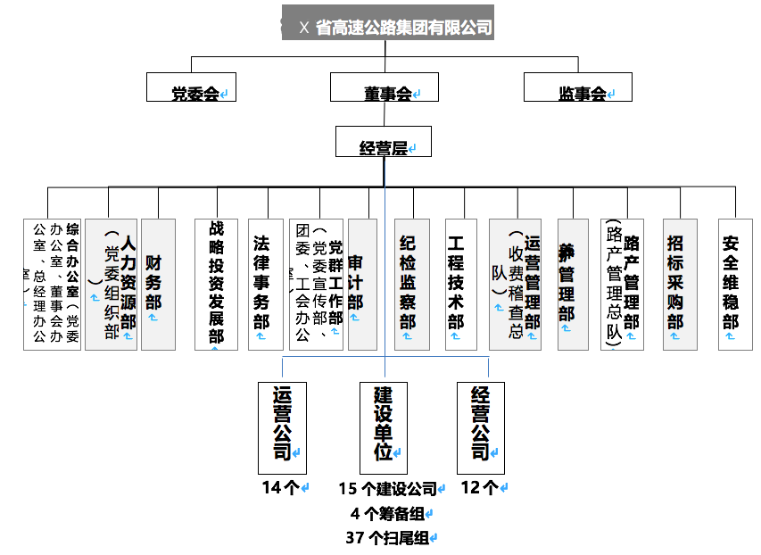 該公司成立于1993年3月,在2018年9月27日整體改制,改制后企業(yè)類型變更為“有限責(zé)任公司”,主要從事高速公路建設(shè)、收費(fèi)、養(yǎng)護(hù)和經(jīng)營(yíng)開發(fā)以及沿線資源開發(fā) ,同時(shí)兼具廣告、地產(chǎn)開發(fā)、物業(yè)、物流等多種衍生業(yè)務(wù);到2018年底,管轄高速公路里程達(dá)4969公里,管轄服務(wù)區(qū)73.5對(duì);公司資產(chǎn)規(guī)模超過4600億元,營(yíng)業(yè)收入達(dá)到141億元。共有正式員工13000人左右正式員工,4000人左右勞務(wù)派遣員工,下設(shè)14個(gè)市州管理處、1個(gè)監(jiān)控中心、15個(gè)在建高速公路項(xiàng)目公司、4個(gè)項(xiàng)目籌備組、37個(gè)掃尾組及12個(gè)二級(jí)經(jīng)營(yíng)公司。