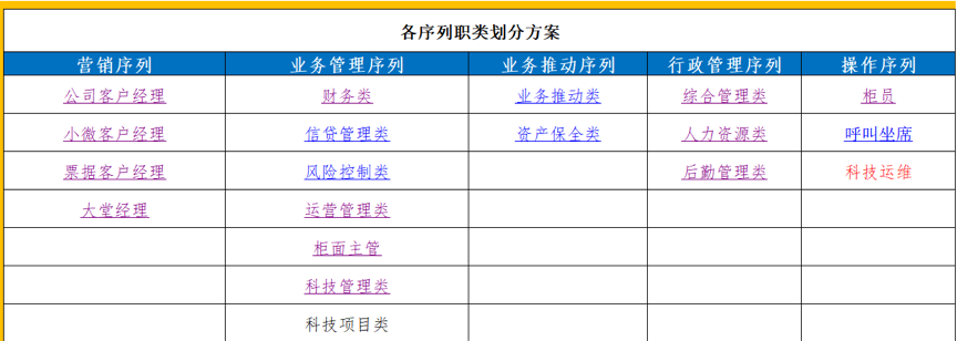 崗位序列劃分與員工發(fā)展通道設(shè)計(jì):此兩項(xiàng)內(nèi)容主要問題點(diǎn)在于薪酬模式與薪酬現(xiàn)狀的對(duì)應(yīng)性,要基于商業(yè)銀行的現(xiàn)狀及薪酬未來設(shè)想,同時(shí)借鑒其他同業(yè)的普遍做法和差異化經(jīng)驗(yàn)進(jìn)行思考和設(shè)計(jì)。