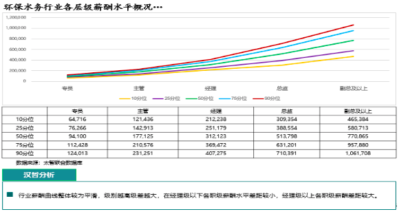 1、明確公司本部員工薪酬在環(huán)保水務(wù)行業(yè)中所處水平。通過(guò)對(duì)公司本部員工薪酬數(shù)據(jù)分層分類統(tǒng)計(jì)與整理,結(jié)合專業(yè)的薪酬數(shù)據(jù)機(jī)構(gòu)與漢哲數(shù)據(jù)庫(kù),根據(jù)公司所處行業(yè)與地區(qū)薪酬水平整體概況,以及甄選出可對(duì)標(biāo)的標(biāo)桿企業(yè),進(jìn)行薪酬水平與人效數(shù)據(jù)的雙對(duì)標(biāo),明確公司本部整體不同層級(jí)員工及分職能類別后不同層級(jí)員工薪酬在行業(yè)中所處水平,以及公司未來(lái)在人效方面的提升目標(biāo)和方向。