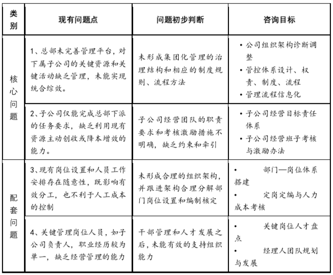 經(jīng)過調(diào)研診斷,該公司具體存在如下問題,漢哲并依此提出了對(duì)應(yīng)的咨詢目標(biāo):