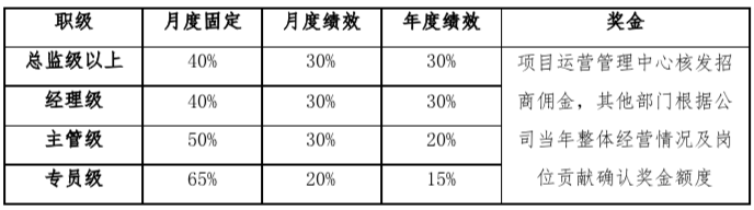 統(tǒng)一年薪模式與崗位績(jī)效工資模式的工資結(jié)構(gòu),約定不同職級(jí)的薪酬固定浮動(dòng)比例,優(yōu)化福利項(xiàng)目及所占比例,改善固定薪資過高的問題。