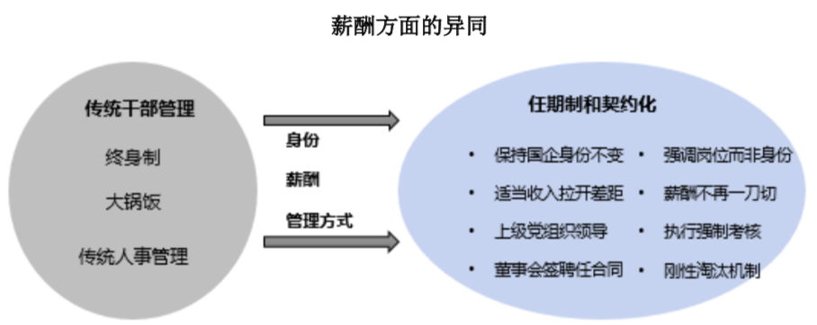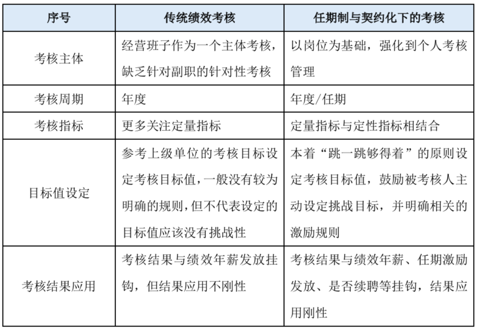 在為眾多國企客戶服務(wù)的過程中,很多客戶發(fā)出這樣的疑問:開展任期制和契約化管理后到底與原來的傳統(tǒng)干部管理模式有哪些區(qū)別?今天筆者結(jié)合國家相關(guān)政策要求和客戶服務(wù)過程中的淺薄經(jīng)驗(yàn)對(duì)二者的區(qū)別進(jìn)行如下總結(jié)。