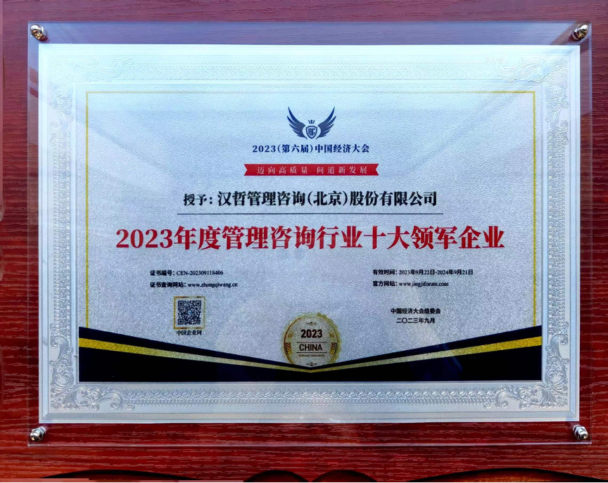 漢哲咨詢榮獲”2023年度管理咨詢行業(yè)十大領(lǐng)軍企業(yè)”