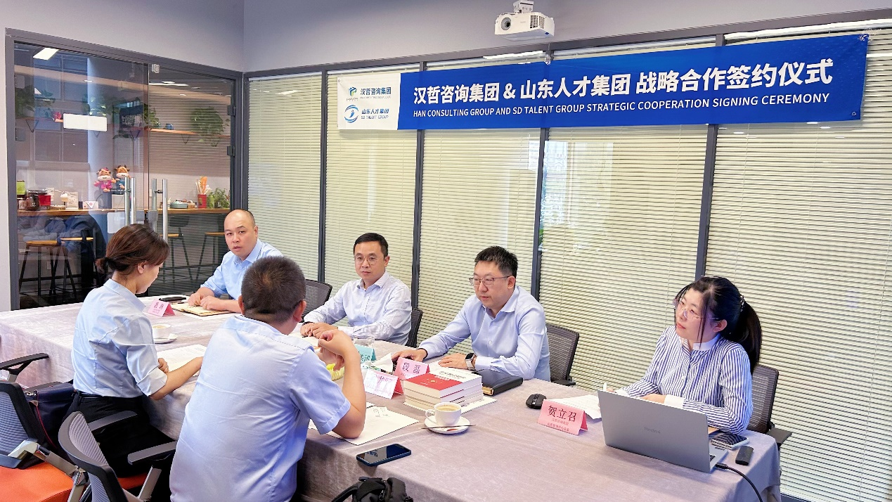 8月7日,漢哲咨詢集團與山東人才集團在漢哲北京運營中心舉行戰(zhàn)略合作簽約儀式,漢哲咨詢集團總裁段磊博士、副總裁趙波、助理總裁賀立召、山東人才集團副總經(jīng)濟師夏龍河等同志出席了此次簽約儀式。
