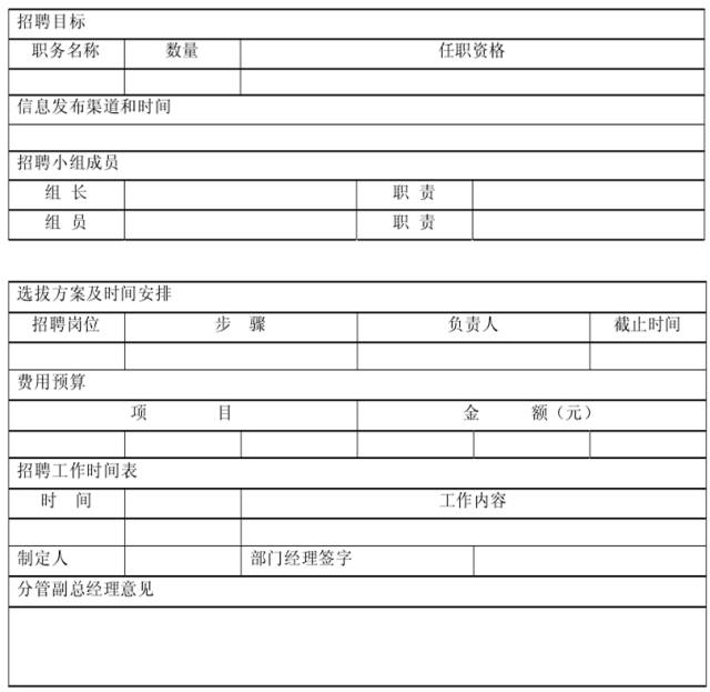 最后一步就是把這些分析進(jìn)行準(zhǔn)確描述,并進(jìn)行書面表述,形成《招聘計(jì)劃說(shuō)明書》,這份說(shuō)明書就是準(zhǔn)備階段的最終成果,它的作用在于指導(dǎo)其后招聘工作的進(jìn)行。