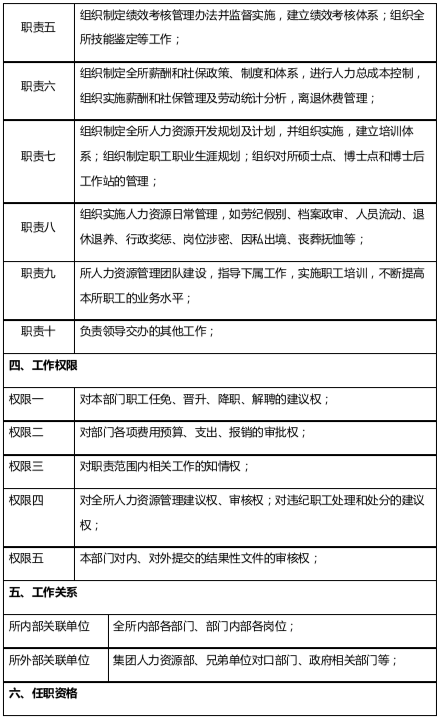 表:人力資源部部長(zhǎng)崗位說明書