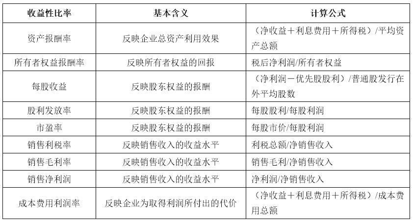 收益性指標分析的目的是觀察企業(yè)一定時期內的收益及獲利能力,其主要指標的含義及計算公式如表1所示。