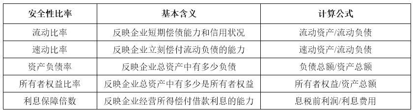 表2:企業(yè)安全性指標