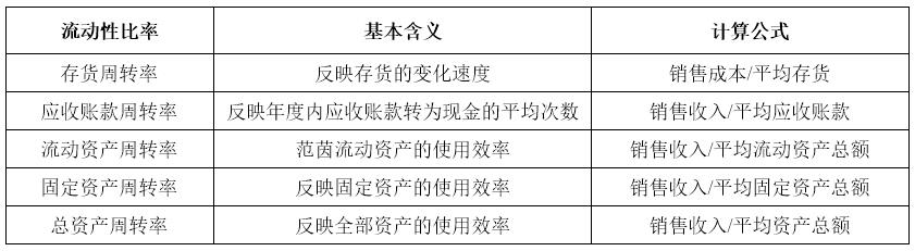 流動性指標分析的目的是觀察企業(yè)在一定時期內資金的周轉情況,是對企業(yè)資金活動的效率分析,主要指標含義及計算公式如表3所示: