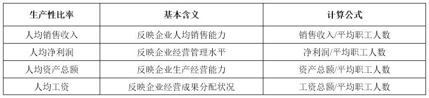 生產(chǎn)性指標分析的目的是判斷企業(yè)在一定時期內的生產(chǎn)經(jīng)營能力、生產(chǎn)經(jīng)營水平和生產(chǎn)成果分配等,主要指標如表5所示。